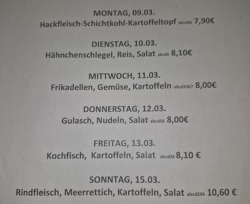 3= Nitritpökelsalz, 4= geschwärzt, 5= enthält Eier, 6= enthält Weizen,