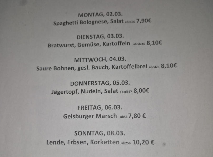 3= Nitritpökelsalz, 4= geschwärzt, 5= enthält Eier, 6= enthält Weizen,
